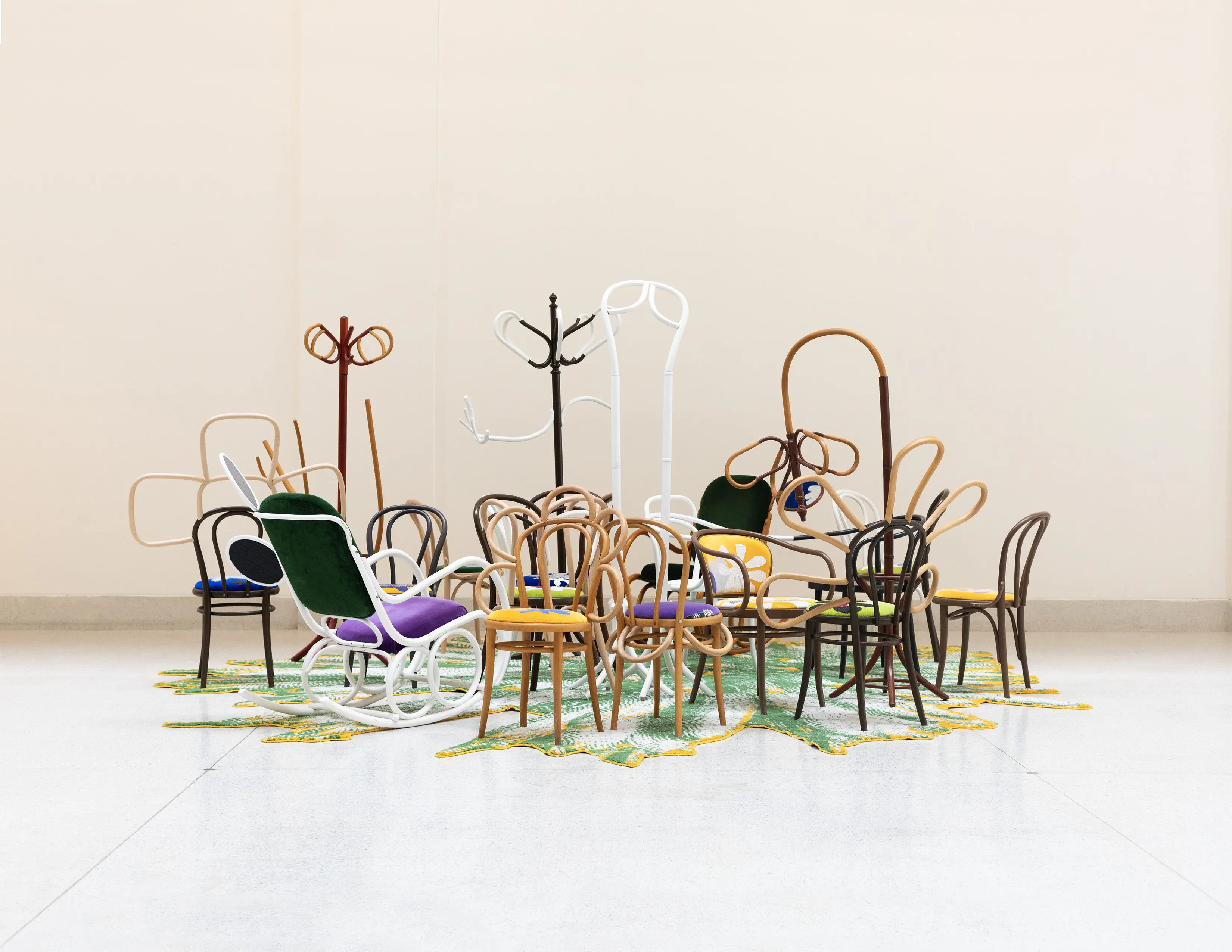 The aim of the residency is to create a series of objects made from discarded garments – textile structures that absorb material excess and transform it into new forms. Each of them contains dozens of pieces of clothing and, on a symbolic level, functions as a carrier of the process of reducing overproduction, contributing to the alleviation of material excess in the contemporary world.