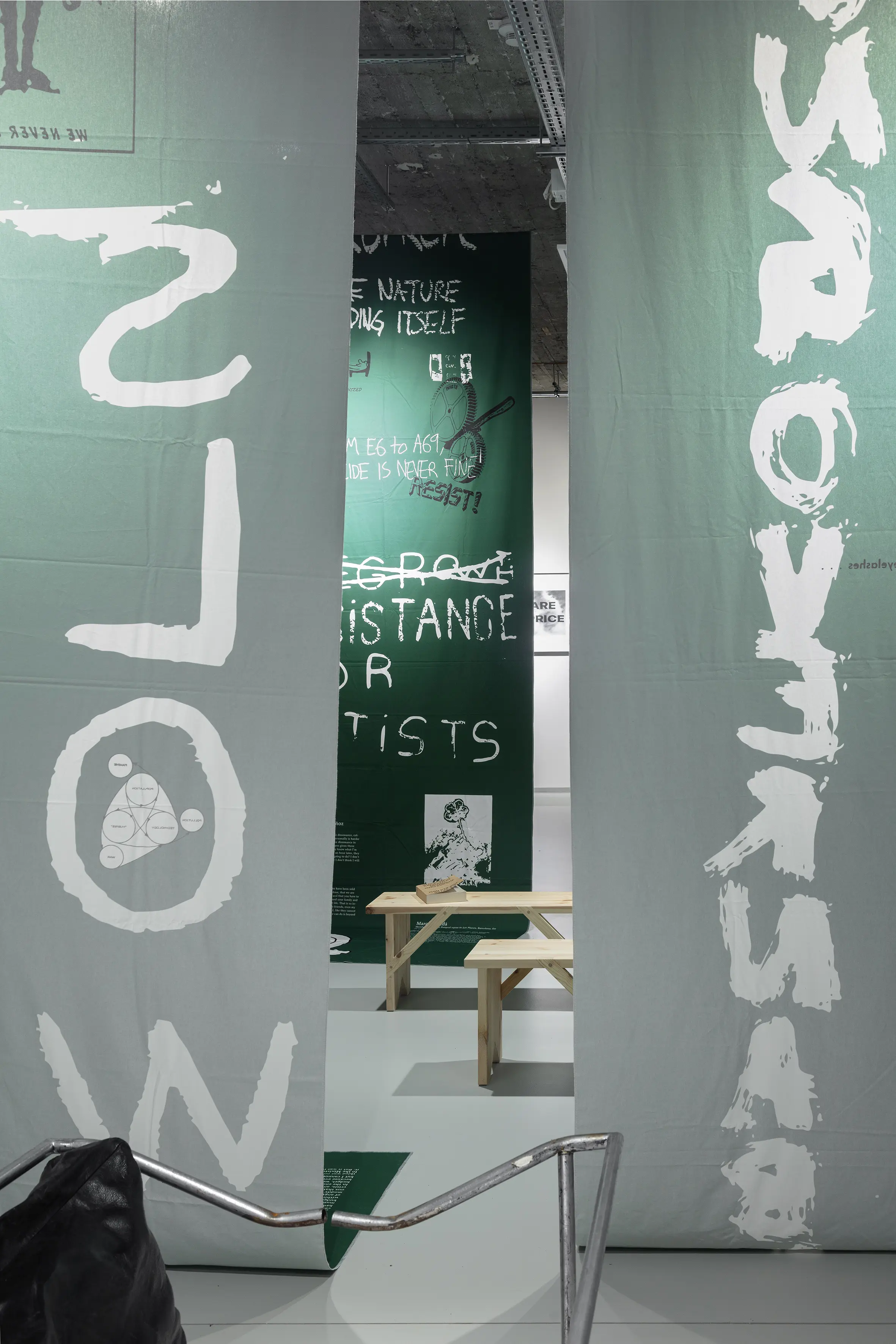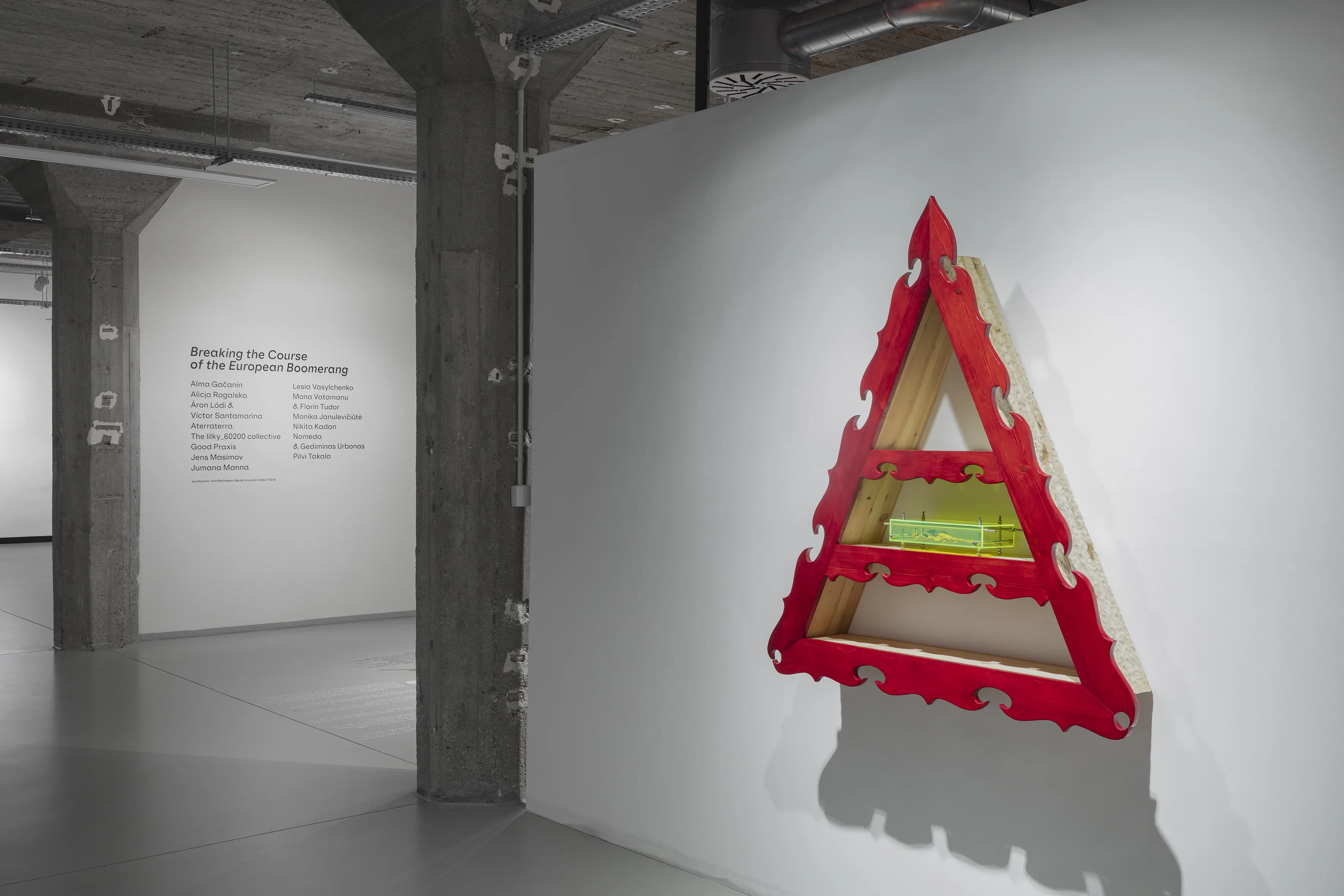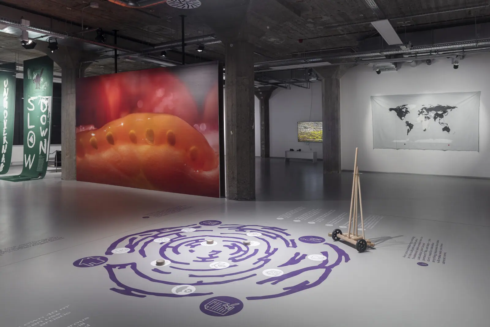 A further set of works addresses contemporary forms of labor and survival. Pilvi Takala and Alicja Rogalska highlight the human cost of the gig economy where workers remain unseen yet keep digital platforms and cities running. Víctor Santamarina and Áron Lődi’s collaborative installation, alongside Jens Masimov’s sculptural reworking of domestic furniture and Monika Janulevičiūtė’s benches, reflect on exhaustion, rest, and the fragile balance between survival and dignity. Meanwhile, the lilky_60200 collective and Good Praxis turn their critique to the art world itself: one through irony, transforming precarity into a playable maze; the other through strategies for post-growth, climate-conscious practice. When seen together in the context of this exhibition, the works do not offer any single solution. Instead, they present a chaotic and multilayer reality, where: global and local, historical and contemporary, personal and systemic interconnect. This polyphony portrays inequality as it is in all its complexity. In so doing and without simplifying matters, the artists of the exhibition also suggest a number of imagined alternatives. What emerges is not a unified solution but a set of counter-models – provisional, situated, and interdependent – that resist the destructive spiral of inequality and sketch possible futures beyond the recurring arc of the imperial boomerang.