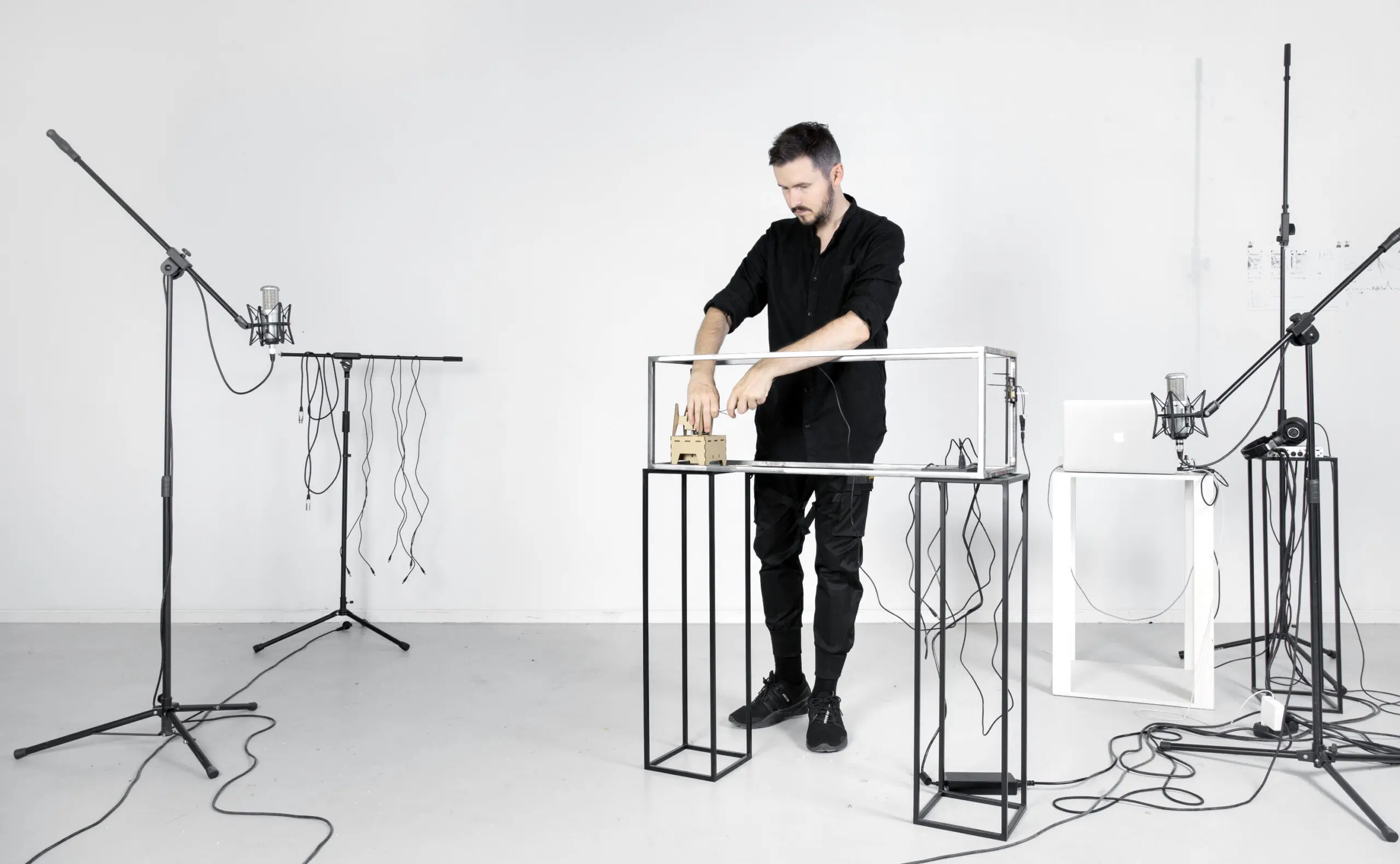 Jacek Doroszenko – polish audio-visual artist, graduate of the Academy of Fine Arts in Cracow. Scholarship holder of the Minister of Culture and National Heritage 2020, the City of Toruń in the field of culture in 2011 and resident at, among others, AAVC Hangar Barcelona in Spain, Kunstnarhuset Messen Ålvik in Norway, Atelierhaus Salzamt Linz in Austria, The Island Resignified Lefkada in Greece, Petrohradska Kolektiv Prague in the Czech Republic, Klaipeda Culture Communication Center in Lithuania. He has participated in The Wrong New Digital Art Biennale in Rio de Janeiro, FILE Electronic Language International Festival in Sao Paulo, Transmission Arts Festival in Athens, ISEA International Symposium on Electronic Art in Vancouver, Athens Digital Arts Festival, Future Places Festival in Porto, European Media Art Festival in Osnabrück, R>>EJECT Radicals Festival in Rotterdam, CoCart Festival in Toruń, Open-Source Art Festival in Sopot, Mediations Biennale in Warsaw, among others. He has presented his works at Propaganda Gallery in Warsaw, Exgirlfriend Gallery in Berlin, Jedna Dva Tři Gallery in Prague, Starak Family Foundation in Warsaw, Wroclaw Contemporary Museum, Witold Lutosławski National Forum of Music in Wroclaw, Polish Institute in Düsseldorf, among others. The artist’s visual works are reflected in the field of music and sound art. His musical compositions have been released in the form of albums of international reach, including Infinite Values, Time Released Sound in the USA; Wide Grey, Eilean Records in France; Soundreaming and Bodyfulness, Audiobulb Records in the UK.