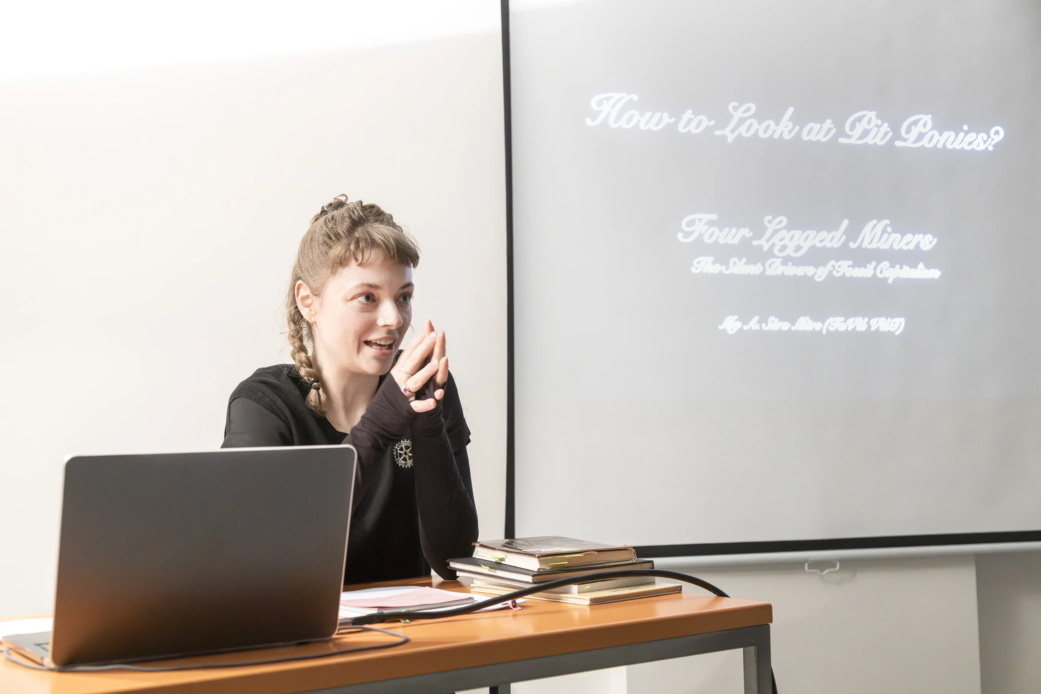 The project reflects on the forgotten lives of these animals, whose labour in the dark shafts helped to satisfy humanity’s hunger for “black gold” and to drive the expansion of the fossil industry. By combining academic research, performative lecture, and video essay, Sára reveals how the history of industrialisation is also a history of interspecies entanglement between animals, technologies, and humans. The work invites reflection on the ethics of extractivism, the notion of progress, and the transformation of our relationship to the planet.